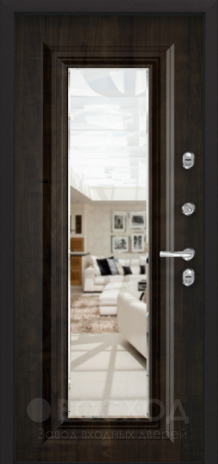 Однопольная дверь с зеркалом наполовину (чёрный / венге) №71 создана для тех, кто ценит практичность и визуальный эффект. Контраст матового чёрного с благородным оттенком венге смотрится современно и универсально: дверь одинаково гармонично вписывается в частный дом, квартиру или офис. Снаружи металл защищён молотковым напылением, которое не боится царапин, влаги и перепадов температуры, а значит, внешний вид сохранится на долгие годы. Внутри — плита МДФ, задающая интерьеру уют и добавляющая звукоизоляции. Зеркальная вставка наполовину полотна делает прихожую светлее и удобнее, избавляя от необходимости в отдельном зеркале. Конструкция собрана из профильной трубы с листом стали толщиной 2 мм и усилена ребрами жёсткости, что гарантирует надёжность и устойчивость к взлому. Два замка — сувальдный Просам и цилиндровый Мосрентген — обеспечивают дополнительную защиту, а двойной контур уплотнения защищает от сквозняков и посторонних шумов.