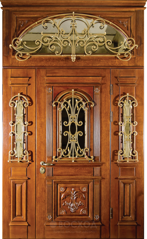 Фото стальная дверь Арочная парадная дверь №98 с отделкой Массив дуба
