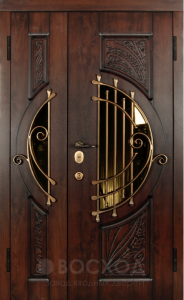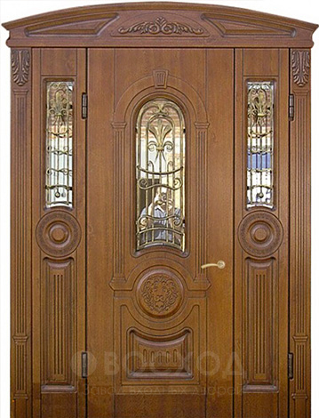 Фото стальная дверь Арочная парадная дверь №377 с отделкой Массив дуба