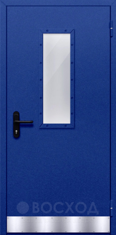 Дверь с прямоугольным стеклом противопожарная №18 удачно сочетает функциональность и строгую эстетику. Металлическое полотно из холоднокатаной стали толщиной 1,5 мм усилено профильными трубами и противосъёмными штырями, что делает конструкцию жёсткой и устойчивой к нагрузкам. Вставка из прямоугольного стекла выполняет сразу две задачи: визуально облегчает массивную дверь и позволяет контролировать происходящее за ней, что особенно ценно для производственных или общественных объектов. Внутреннее заполнение из базальтовой плиты усиливает тепло- и шумоизоляцию, а два контура уплотнения в сочетании с термоактивной лентой создают надёжный барьер против проникновения дыма. Покрытие из нитроэмали защищает поверхность от царапин и сохраняет презентабельный вид даже при интенсивной эксплуатации. Такая модель объединяет надежность противопожарной двери и удобство использования в повседневной работе.